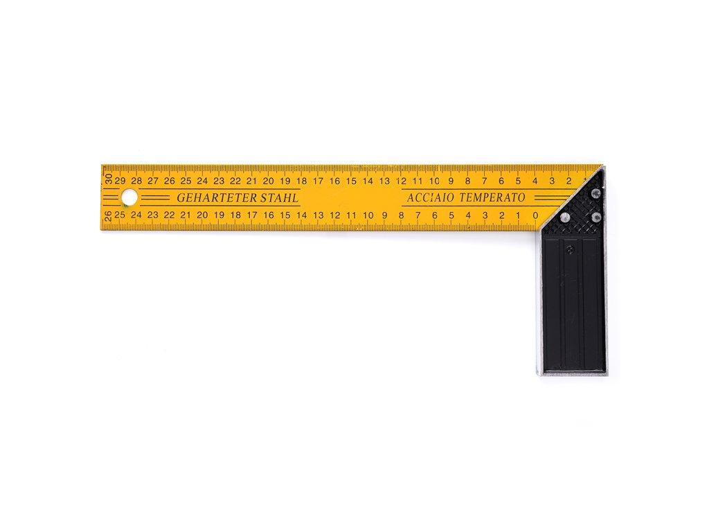 Truhlářský úhelník z tvrzeného plechu s hliníkovou patkou a stupnicí je zařízení na určování pravého úhlu a trasování při tesařských, stavebních a měřicích pracích. Výhodou úhlového pravítka je také přehledná milimetrová stupnice a přesnost měření – přesně určuje úhel 90 stupňů, spojení patky a ramena určuje úhel 45°.