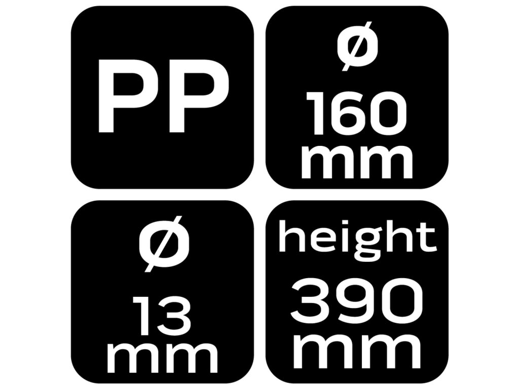 160 mm úhlová nálevka 11-553 o objemu 1,2 l od společnosti NEO TOOLS o průměru 160 mm, výšce 290 mm a průměru výlevky 13 mm je určena k nalévání tekutin na těžko přístupných místech. Trychtýř je vyroben ze snadno čistitelného PP, má objem 1,2 l, vysoký nalévací okraj a ergonomickou rukojeť. Úzká výlevka umožňuje dosáhnout na těžko přístupná místa a její odolnost vůči olejům, kyselinám a palivům z ní činí výrobek pro náročné aplikace v průmyslu a dílně. Úhlová nálevka NEO TOOLS se doporučuje pro mechaniky a domácí kutily.