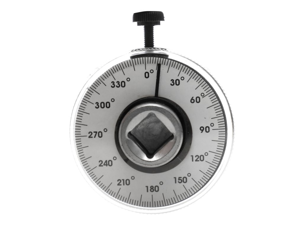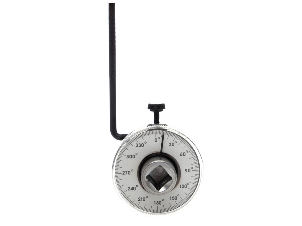 Úhloměr slouží k dotažení hlav pod určitým úhlem (konečné dotažení šroubů a matic s určitým utažením měřením úhlu otáčení).