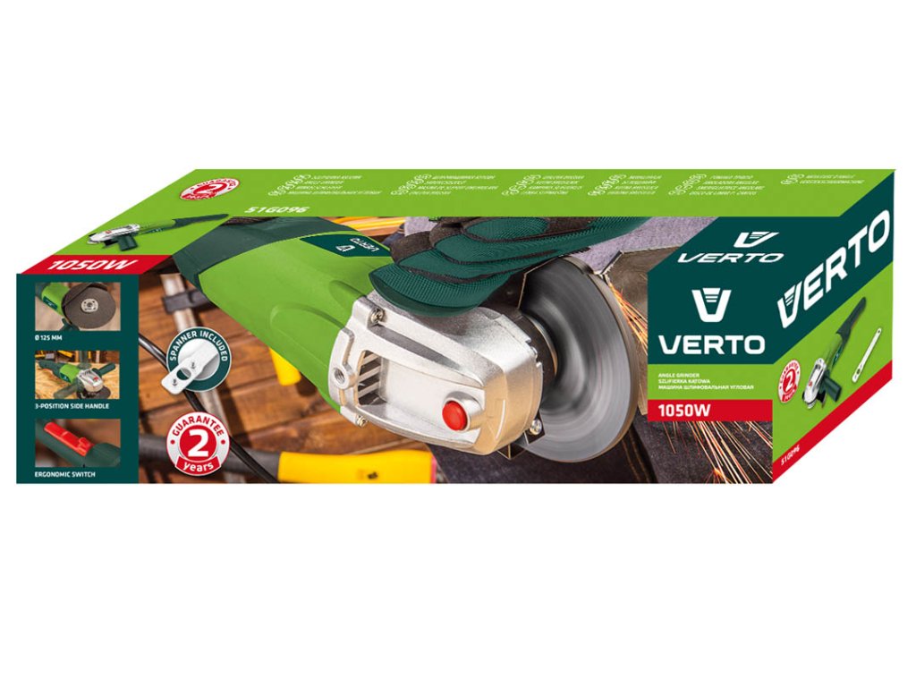1050W úhlová bruska VERTO (ref. 51G096) je silná a robustní úhlová bruska o průměru řezného kotouče 125 mm, určená pro řezání a broušení materiálů, jako je ocel, litina. Má robustní prodloužený kryt odolný vůči poškození a výkonný 1050W motor, který zvládne většinu dílenských prací. Tvar krytu umožňuje pevné uchopení brusky při práci. Maximální otáčky 10500 ot/min. Dodává se s ocelovým chráničem kotouče, speciálním klíčem a přídavnou rukojetí. Soulad s evropskými bezpečnostními normami zaručuje certifikát CE. Značka VERTO nabízí řadu elektrického nářadí a příslušenství pro každého kutila.