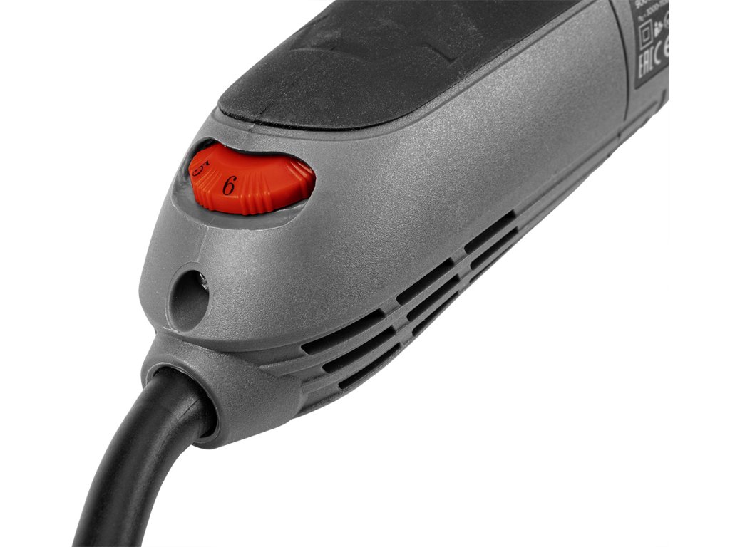 Úhlová bruska 900 W, kotouč 125 x 22,2 mm, nastavitelné otáčky 3000 - 12000 ot/min, závit vřetene M14, hmotnost 1,9 kg; příslušenství: přídavná rukojeť, chránič kotouče, speciální klíč; kartonová krabice