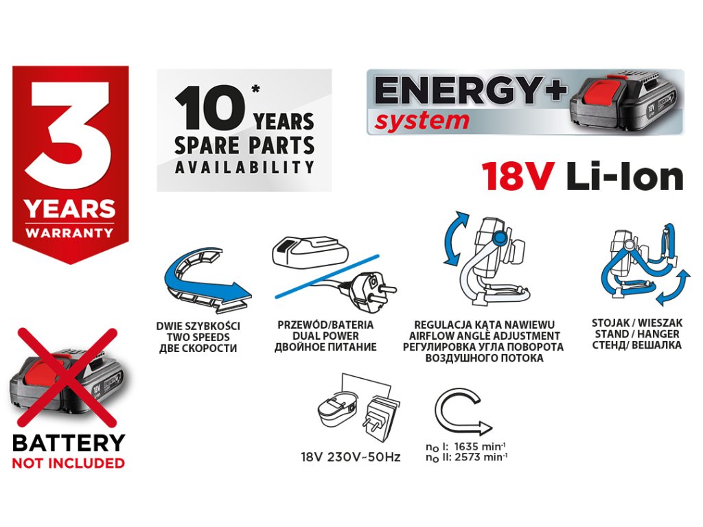 Energy+ 18V akumulátorový ventilátor 58G080