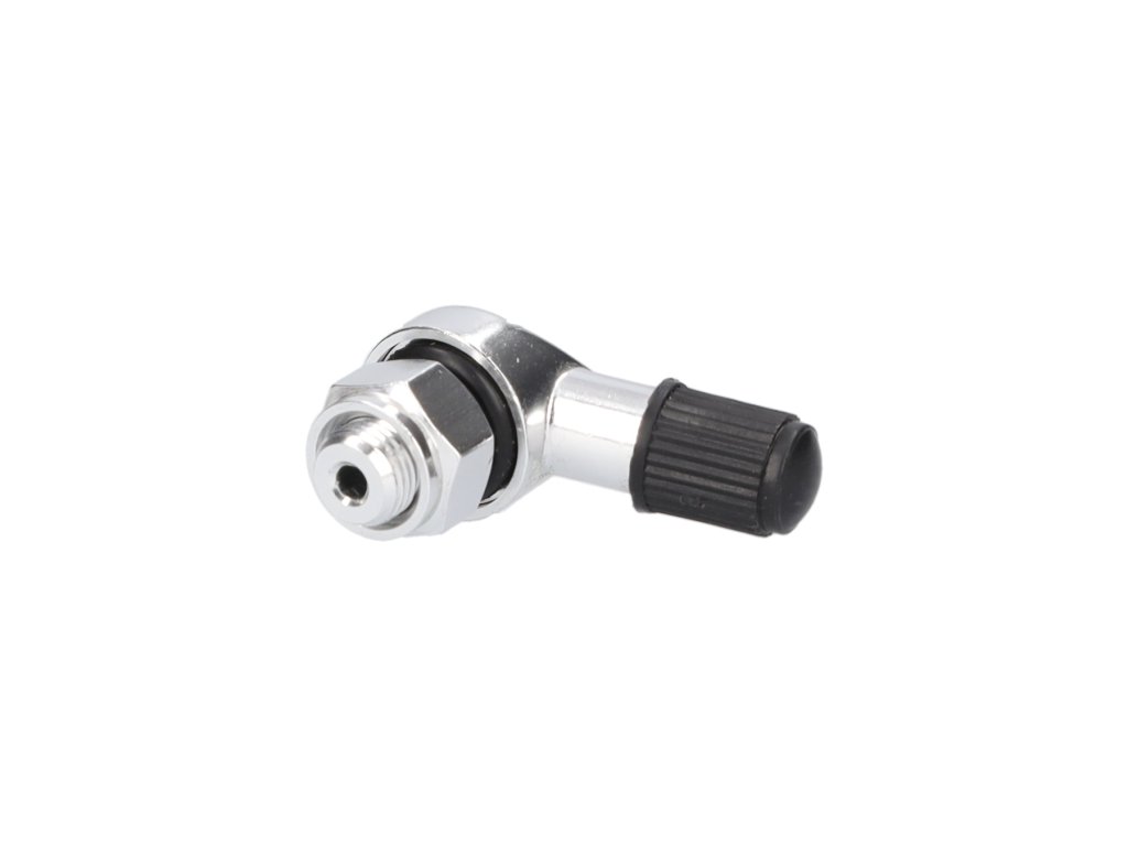 Kovový šroubovací ventil pro bezdušová motocyklová kola. K utahování použijte speciální momentové klíče a šroubováky.