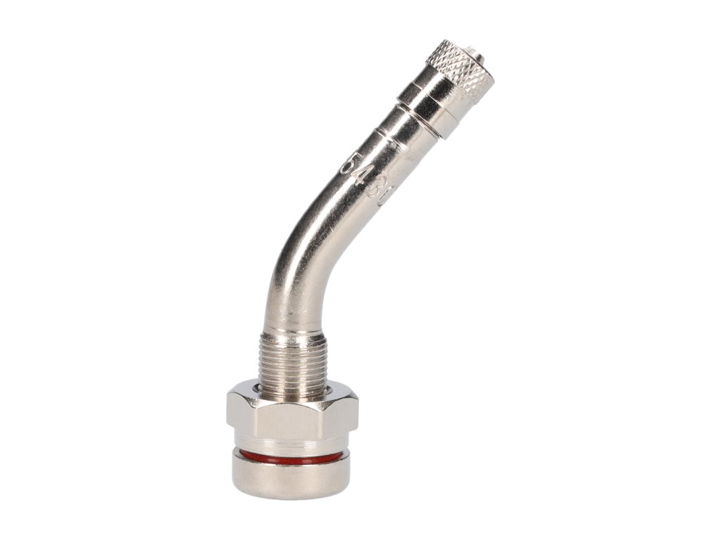 59 MS - 45° (TR 543 C) ventil pro bezdušové pneumatiky nákladních automobilů a autobusů pro použití ve slitinových discích se sedlem ventilu 9,7 mm K utahování použijte speciální momentové klíče a šroubováky.