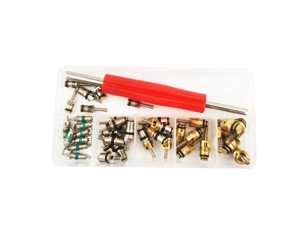 Sada jader ventilů, 40 ks, 6 druhů, klíč na ventily
