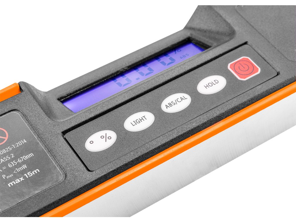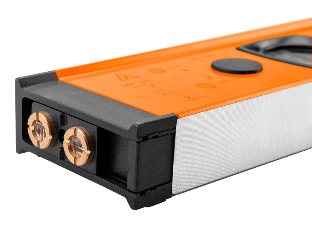 60 cm dlouhá vodováha NEO s elektronickým LCD displejem (ref. 71-200) je nepostradatelným nástrojem při dokončovacích nebo renovačních pracích. Má tři způsoby určování: vertikální, horizontální a pravoúhlé. Přesnost měření je +/- 3 mm na vzdálenost 10m. Laser vydá zvukový signál po dosažení následujících úhlů: 0°/45°/90°. Napájení dvěma 1,5 V bateriemi AAA.
