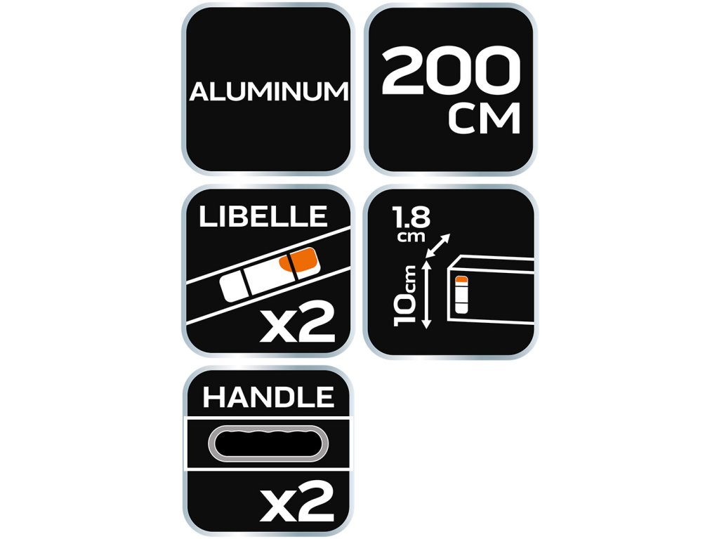NEO zednická lata (ref. 75-543) s délkou 200 cm a obdélníkovým průřezem. Využití nachází během stavebních prací. Vyrobeno z vysoce kvalitního hliníku. Díky dvěma zabudovaným libelám, horizontální a vertikální, lze i vyrovnávání. Pohodlné rukojeti usnadňují práci s nářadím. Značka NEO splňuje očekávání profesionálů.