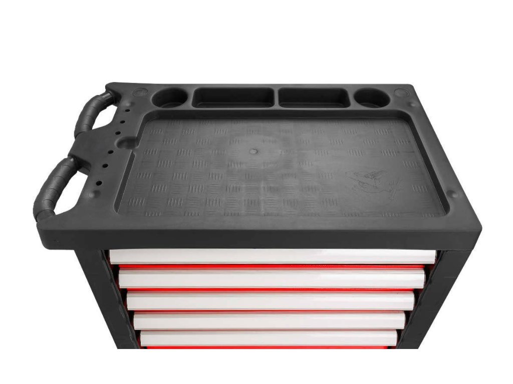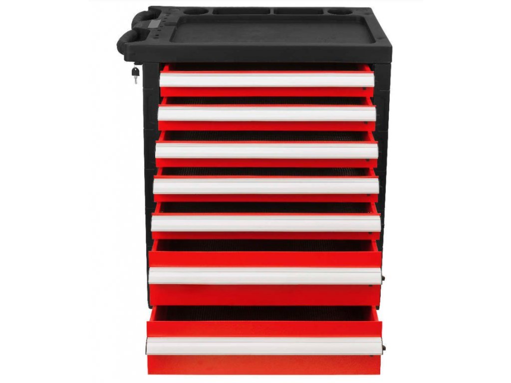 Vozík je vybaven sedmi zásuvkami, a tak poskytuje dostatečné množství odkládacího prostoru. Ve vrchní části se nachází centrální zámek, který dokáže současně zablokovat všechny zásuvky. Vrchní část je navíc vybavena přihrádkami na malé součástky. Přihrádka je vyrobena ze speciálního plastu.