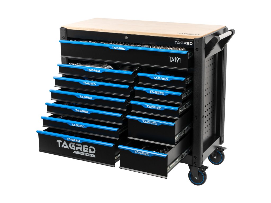 Dílenský vozík Tagred je vybaven doplňkovou sadou nejkvalitnějších nástrojů, které uspokojí potřeby i nejnáročnějších uživatelů. Bohaté vybavení skříně TAGRED vám umožní přizpůsobit sadu nástrojů potřebám nejnáročnějších dílenských úkolů