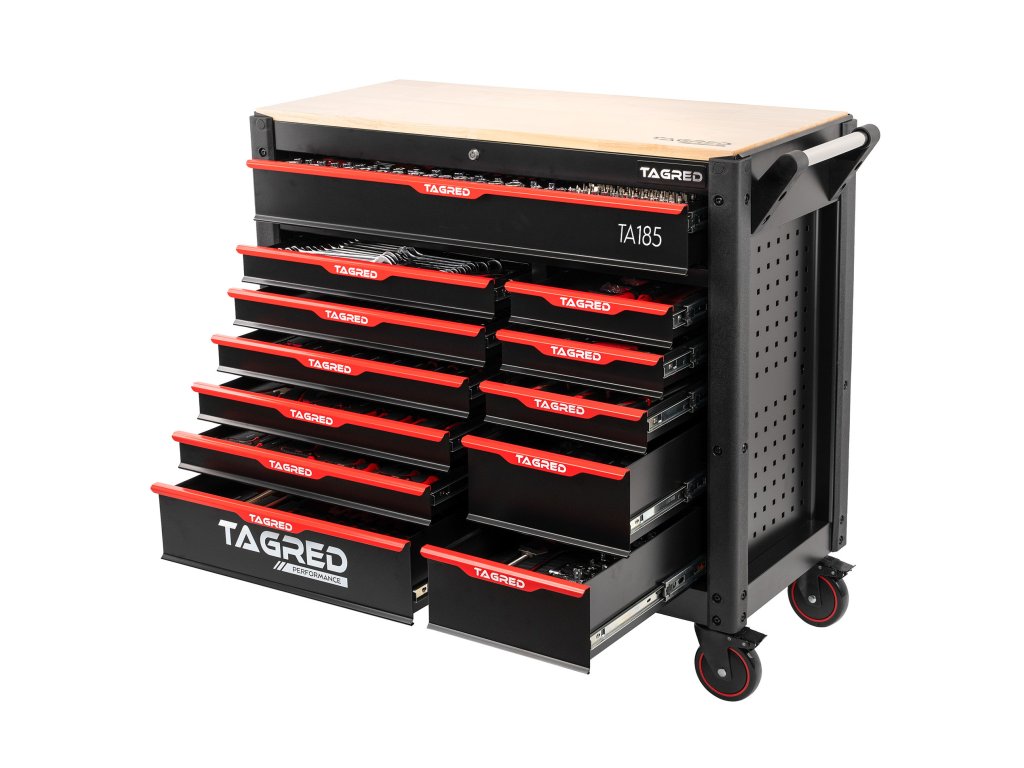 Dílenský vozík Tagred je vybaven doplňkovou sadou nejkvalitnějších nástrojů, které uspokojí potřeby i nejnáročnějších uživatelů. Bohaté vybavení skříně TAGRED vám umožní přizpůsobit sadu nástrojů potřebám nejnáročnějších dílenských úkolů