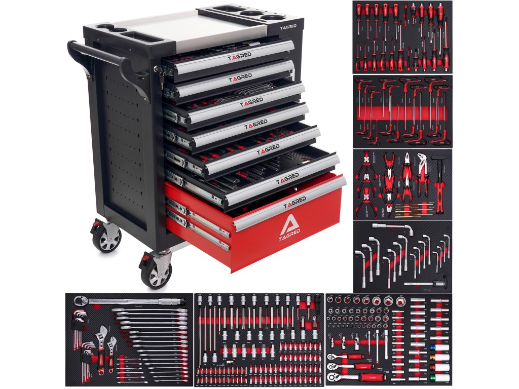Dílenský vozík s nářadím Tagred TA217 298ks, 72-zubové ráčnové klíče