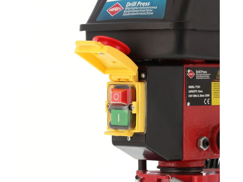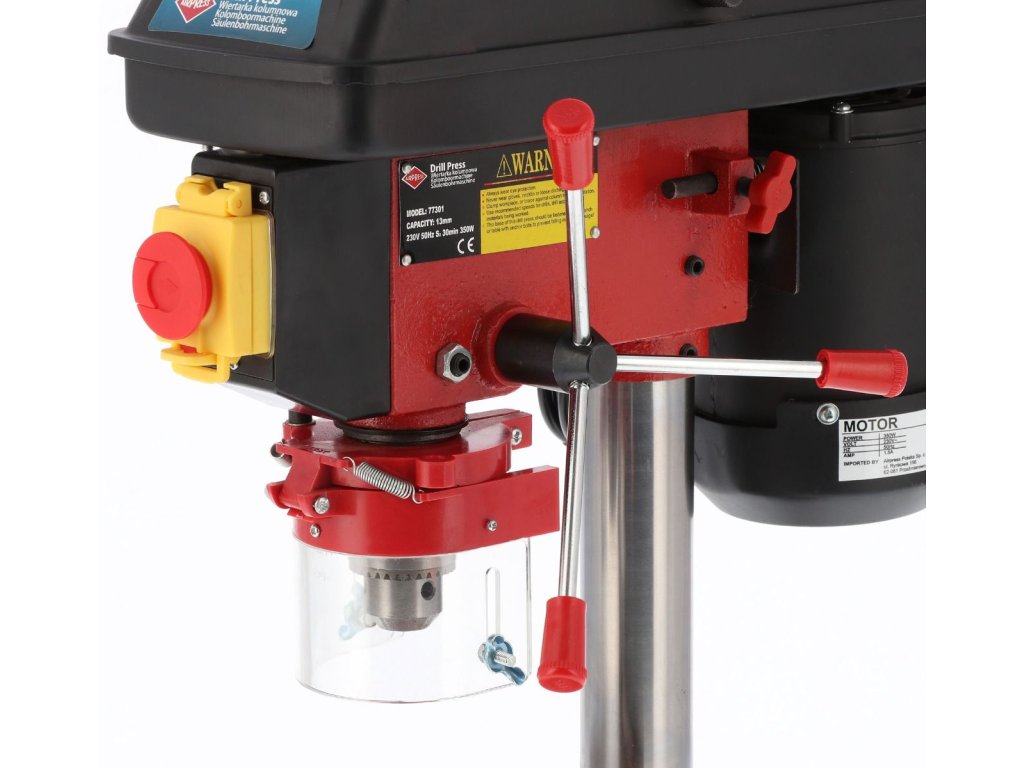 - Kompaktní rozměry: S výškou 580 mm vrtačka zabírá málo místa, což ji činí ideální do dílen s omezeným prostorem.