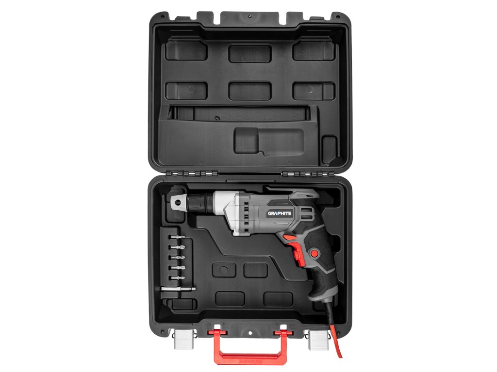 Síťový vrtací šroubovák 520 W, 0-4200 otáček za minutu, kufr 58G794 od společnosti GRAPHITE je 520 W síťový stroj s 0-4200 ot./min. Spolehlivé pro šroubování a vrtání otvorů do dřeva, kovu, keramiky nebo plastů. Je vybaven zámkem vypínače, který umožňuje nepřetržitou práci při konstantní rychlosti a možnost nastavení rychlosti stisknutím vypínače. Umožňuje také nastavit hloubku šroubování. Je vybaven 1/4" 6,35 mm držákem bitů. Ergonomický design, nízká hmotnost přístroje a 4 m napájecí kabel usnadňují práci na hůře přístupných místech. Vrtačka se dobře drží v ruce díky protiskluzové rukojeti. Nabízí se s magnetickým sklíčidlem, 5 m praktickým kufříkem na uskladnění. Certifikát CE zaručuje soulad s evropskými normami.