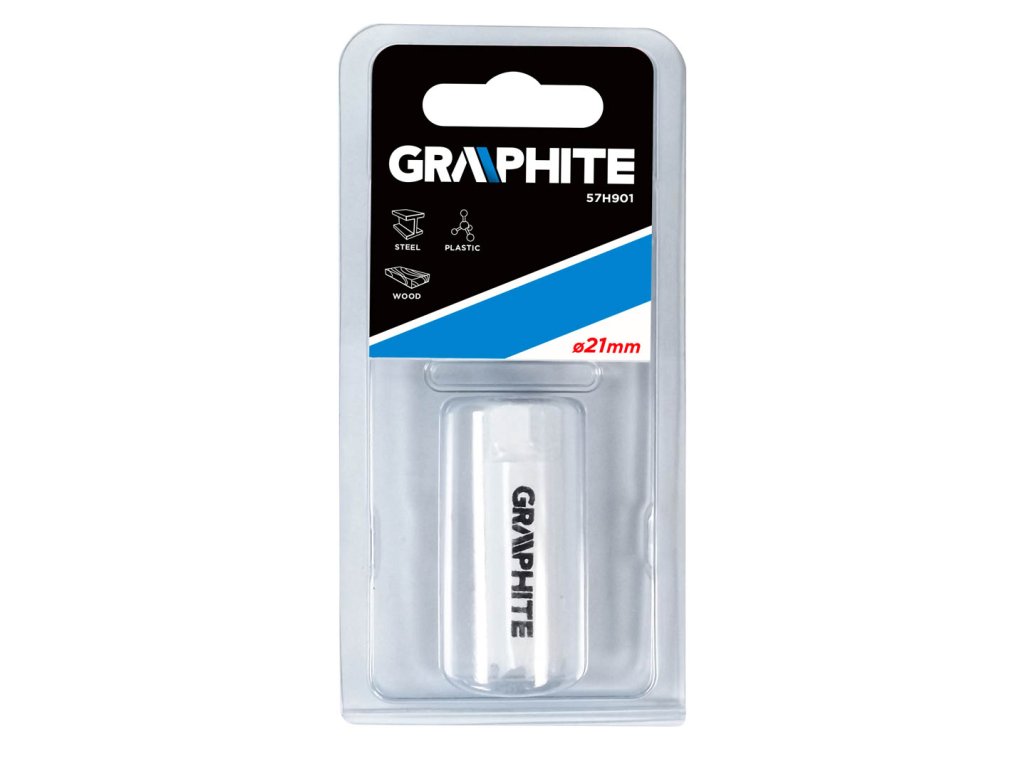 Bimetalový vykružovák GRAPHITE prostřednictvím progresivních zubů vyrobených z rychlořezné oceli umožňuje efektivní vrtání přesných otvorů v oceli, nerezové oceli, dřevě, plastech, kompozitních materiálech.