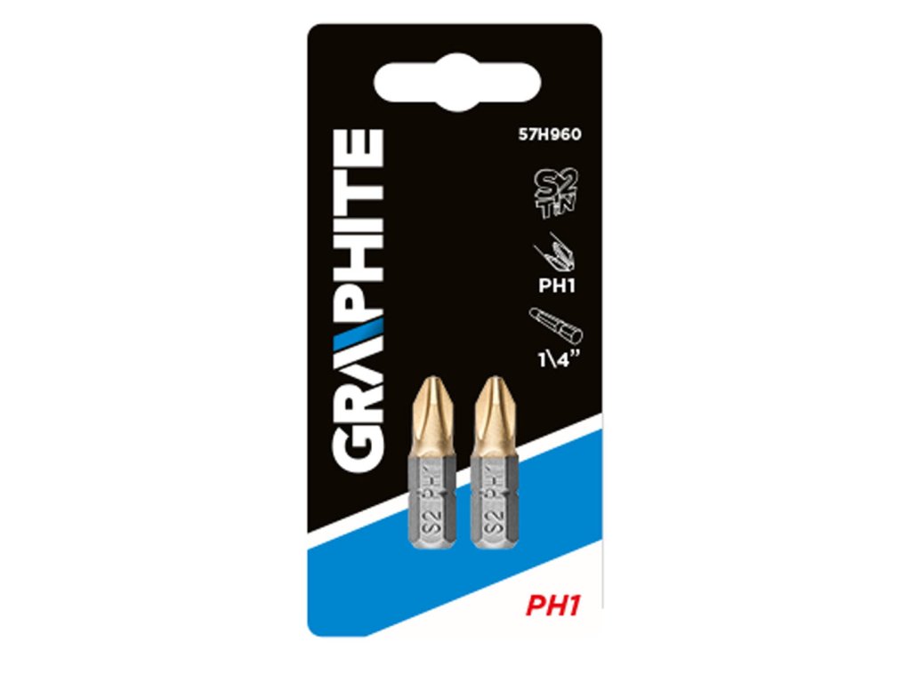 Šroubovací koncovky GRAPHITE s pohonem 1/4" pro utahování/povolování šroubů. Povrchová úprava nitridem titanu (zlatá barva) významně prodlužuje životnost nástroje tím, že vytvrzuje bod dotyku s hlavou šroubu.
