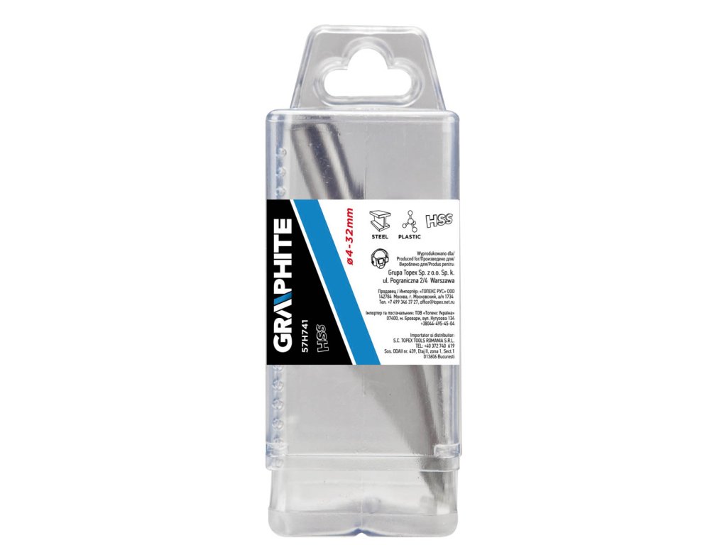 Plynulý vrták GRAPHITE vyroben z rychlořezné oceli. Umožňuje vrtání a vystružování děr v tenkých pleších z oceli, hliníku, mědi a plastových dílech. Forma kužele umožňuje efektivní vrtání otvorů s libovolným průměrem v daném rozsahu.
