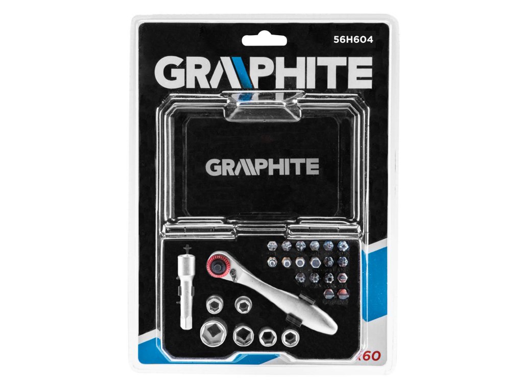 Sada základních koncovek a nástavců GRAPHITE (ref č. 56H604), ideální pro menší montážní práce. Díky ráčně je možné spolehlivé a rychlé šroubování a odšroubování součástek