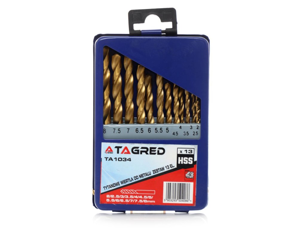 Titanové vrtáky do kovu, vrták 2,0-8,0 mm 13 ks TA1034