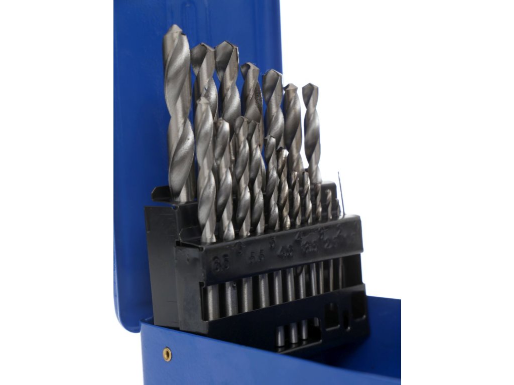 Super sada 19 vrtáků do kovu. Vyrobeno z nejlepší rychloostré oceli s označením HSS s válcovým držadlem a zesílenou řeznou hranou.