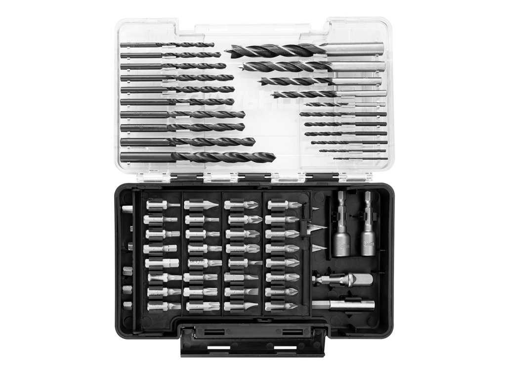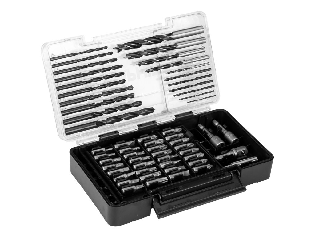 Sada vrtáků a bitů, nástrčné hlavice, 66 kusů 56H619 od společnosti GRAPHITE je komplexní sada nářadí a příslušenství sestávající ze 66 kusů. Obsahuje 16 kusů spirálových vrtáků HSS s povrchovou úpravou černým oxidem, velikosti: 1,5, 2, 2,5, 3, 3, 3,2, 3,5, 4, 4,5, 4,8, 4,8, 5, 5,5, 6, 6,5, 8 mm. Dále je vybaven 5 kusy vrtáků do dřeva z oceli C45 a černého oxidu (3, 5, 6, 8, 10 mm), 3 kusy plochých vrtáků do dřeva, také z oceli C45 (13, 19, 25 mm) nebo 32 kusy vrtáků 25 mm. Souprava GRAPHITE obsahuje také magnetický maticový vrták ve dvou kusech (6, 8 mm), magnetickou rukojeť z oceli C45 a praktický adaptér pro nástrčnou hlavici 3/8".