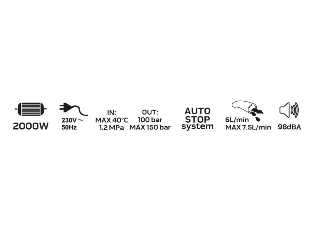 Tlaková myčka 2000 W, 100 barů (max. 150 barů) 04-705