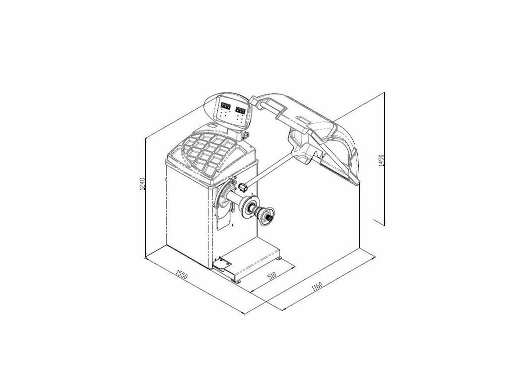 Řím diametr 10 - 28” Maximum wheel diameter 1 118 mm Rim width 1,5-20” Maximum wheel width 510 mm Maximum wheel weight 70 kg Balancing accuracy 1 g Time of measurement Dimension 1550 x 1160 x 1240 Device weight 128 kg Power 230 V, 50 Hz Guarantee 12 month