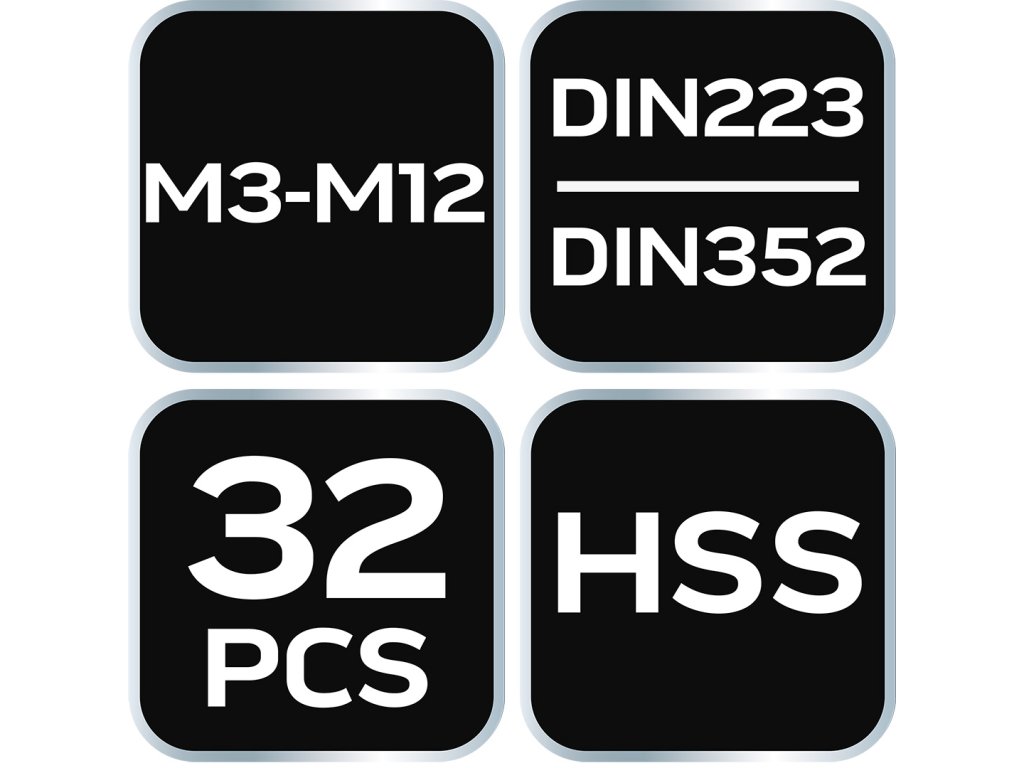 Sada závitníků, M3 - M12, 32 ks 12-915