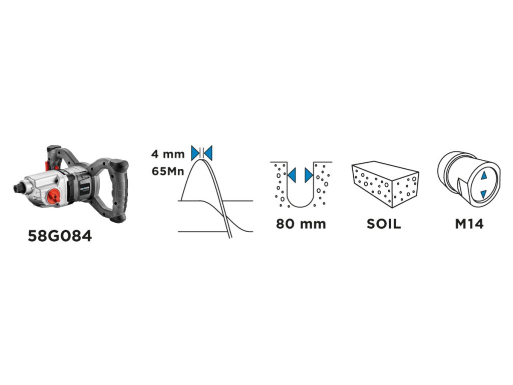 GRAPHITE půdní vrták (ref. 56H780) se závitem M14, průměrem 80 mm a délkou 600 mm je robustní vrták určený k použití s akumulátorovou míchačkou Energy+ 58G084. Vrták se používá k vrtání děr do země, zejména v tvrdém a těžkém terénu s překážkami, jako jsou kameny nebo kořeny. Je nepostradatelný při pracích na zahradě, kdy se do země vrtají díry pro výsadbu stromů, jakož i při instalaci plotů, krytů a podpěr pro rostliny. Vrták je vyroben z vysoce kvalitní oceli, což zaručuje pevnost a vysokou odolnost nástroje.