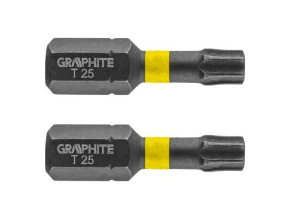 Rázové bity GRAPHITE (ref. 56H514) Typ TX25, celková délka 25 mm, jsou robustní bity určené pro použití s větším kroutícím momentem pomocí šroubováků nebo rázových utahováků. Vyrobeno z vysoce kvalitní oceli S2, která má zvýšenou pružnost a odolnost vůči mechanickému poškození. Torzní zóna, která se otáčí při vysokém kroutícím momentu, snižuje přenos síly, díky čemuž je vrták odolnější vůči zlomení a několikanásobně se prodlužuje jeho životnost. Pracovní konec bitu zaručuje dokonalé uchycení. Značka GRAPHITE nabízí široký sortiment elektrického nářadí, které splňuje potřeby profesionálů.