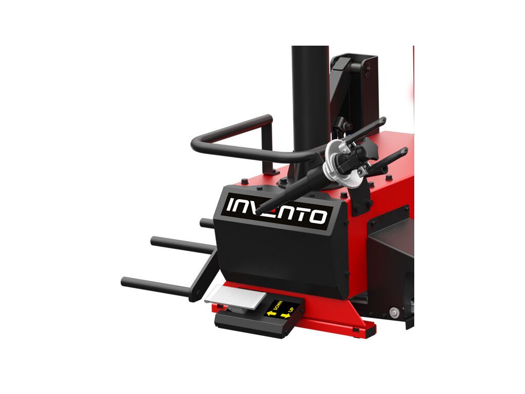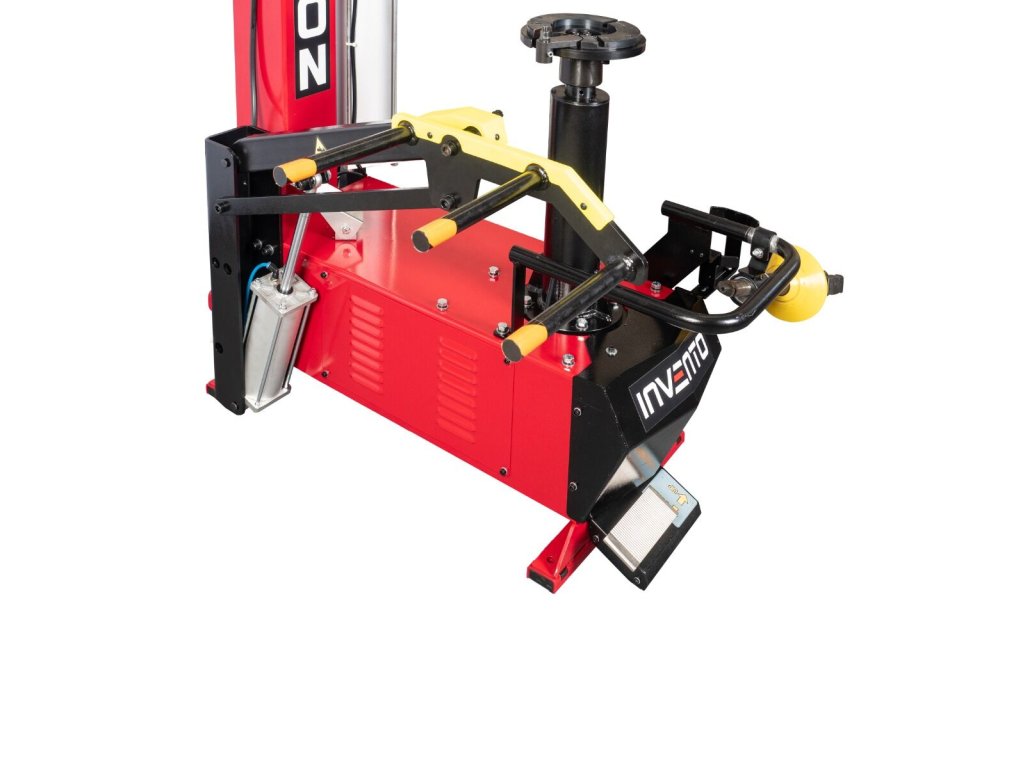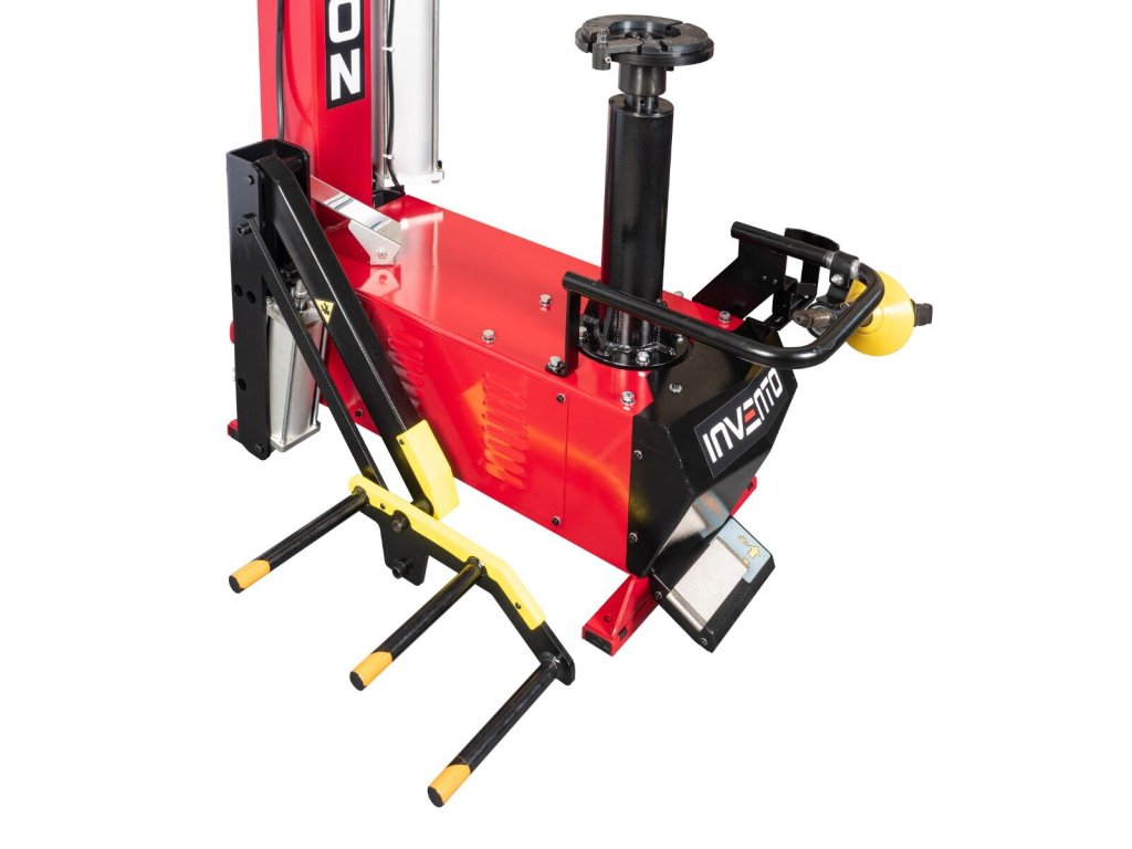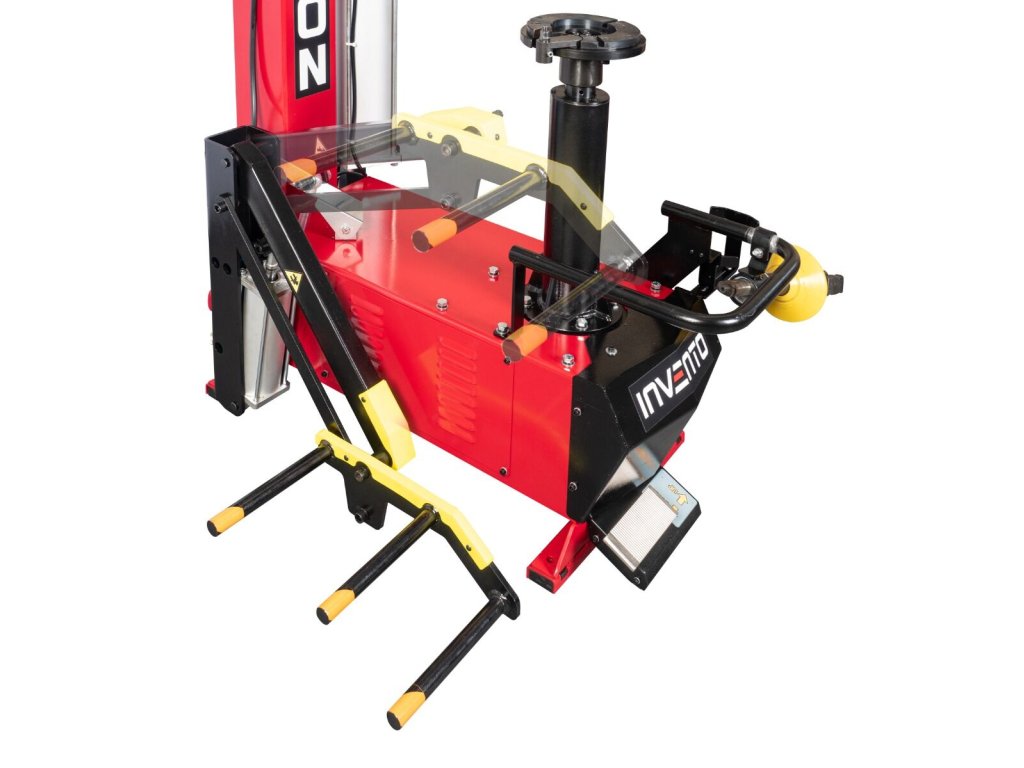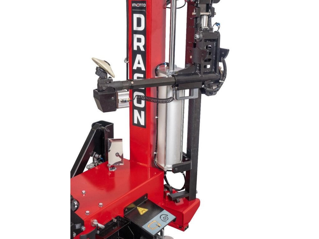 INVENTO DRAGON - Automatická zouvačka pneumatik pro osobní automobily s pomocným ramenem, LeverLess systém bez tření, centrální upínání, integrovaný zdvih kol a pohon s motorem MI (MotoInverter) umožňující plynulou regulaci rychlosti.