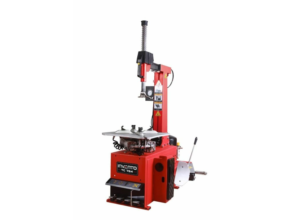 Zouvačka pneumatik INVENTO TC 724 MI je nový stroj vybavený motorem Inverter (napájení 230 V/ 50 Hz) a válcem na drcení patky. Stroj podporuje ráfky o průměru 10 až 24 palců a šířky kol do 14 palců.
