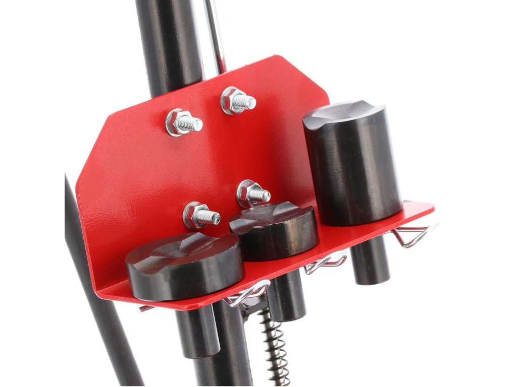 Tento model nabízí maximální nosnost 35 000 kg a rozsah zdvihu až do 535 mm, což z něj činí ideální řešení pro široké spektrum aplikací. Je vybaven soupravou čepů, která umožňuje přizpůsobit hlavu různým zvedaným předmětům, což zvyšuje jeho všestrannost. Dlouhá páka a namontovaná transportní kolečka usnadňují obsluhu a přemisťování zařízení.